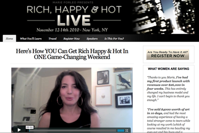 I said to Amanda, “Let’s ditch the sales letter thing and put up a simple, easy-to-understand website that communicates exactly what Rich Happy & Hot LIVE is, who it’s for, what participants will get out of it, where it is, who is speaking, the guarantee and of course, make it easy and straight forward to register.”