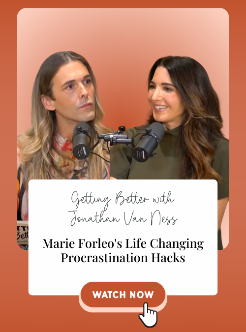 In this heartfelt and hilarious conversation, Marie joins Jonathan Van Ness to tackle a topic we all wrestle with—procrastination. Together, they unpack the deeper reasons behind why we put things off, from fear to misalignment, and offer practical strategies to move forward with clarity and compassion. They also explore how to support the procrastinators in your life and reframe negative self-talk into empowering action.